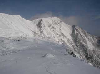 雪の締まった稜線通し直登 の冬道を利用する。