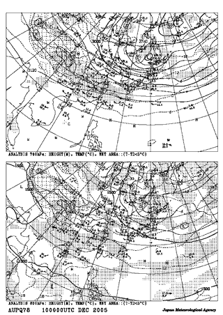 2005年12月10日 9:00地上天気図 2005年12月10日9:00高層天気図 700hpa 850hpa