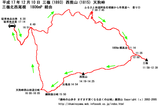 山行記録詳細と写真平成17年12月10日 晴れ 曇り