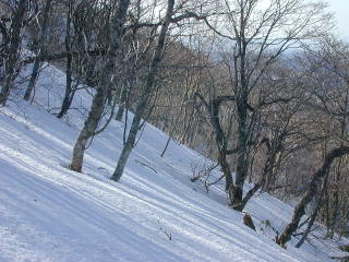 >残雪期 深淵 石堂山(1636) 矢筈山(1848)落合峠 >平成16年3月28日>3月春分の日頃の積雪量比較 深淵 石堂山 矢筈山 落合峠