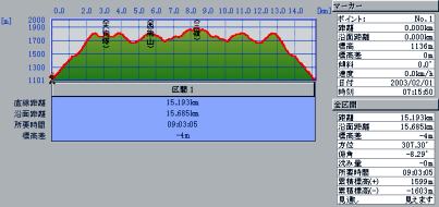 GPS トラックログ 累計距離15.7km 累計標高差1599m