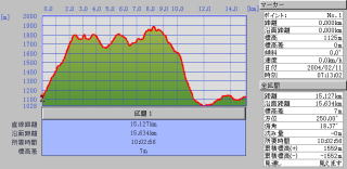 累計歩行距離15.63km 累計標高差1559m