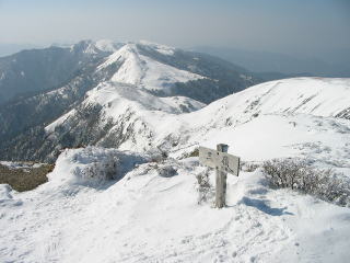 HOME > 山行記録 > 積雪期 > 天狗塚(1812) 西熊山(1815)三嶺(1893) 三嶺北西尾根 1806P経由>平成16年2月11日
