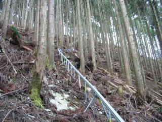 この モノレールは 間伐作業などの 林業従事者の 人員輸送用です。