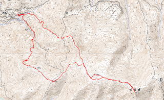 阿佐P地点 8:57 -- モノレール始発点 --沢徒渉地点 9:36 --地籍調査地点 10:50--1390.6三角点 11:23 --1486P 11:49 --北西尾根縦走路分岐 12:30 --牛の背三角点 12:53 -- 天狗塚山頂 (13:27-13:38) --牛の背経由 --北西尾根縦走路分岐 14:30 -- 北西尾根no149杭地点 15:01 --モノレール終点 15:11 -- モノレール側道経由-- モノレール始発点 15:58 ---阿佐 P地点 16:17