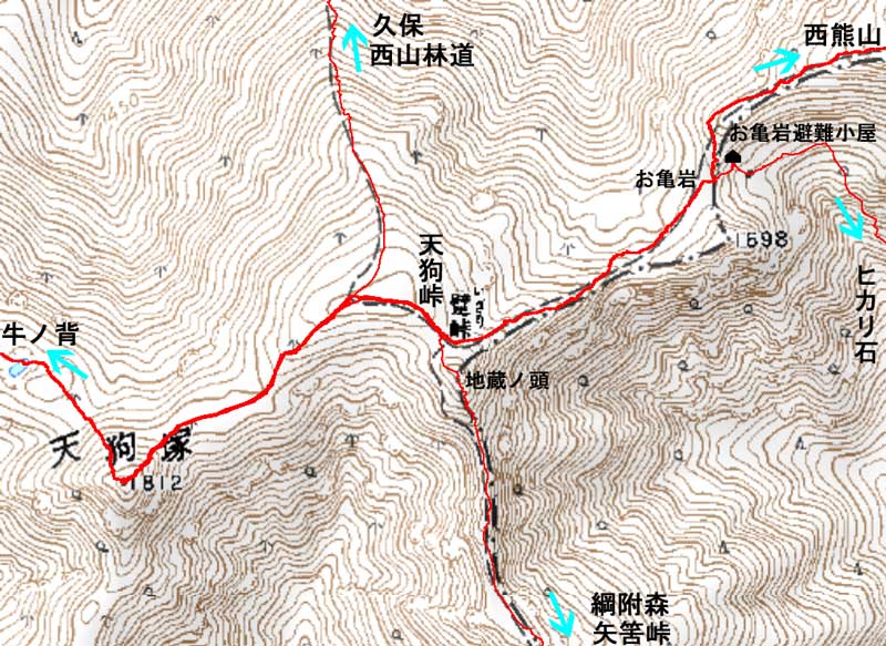 HOME > 山行記録 >詳細地図 >天狗塚(1812) 天狗峠 お亀岩 付近