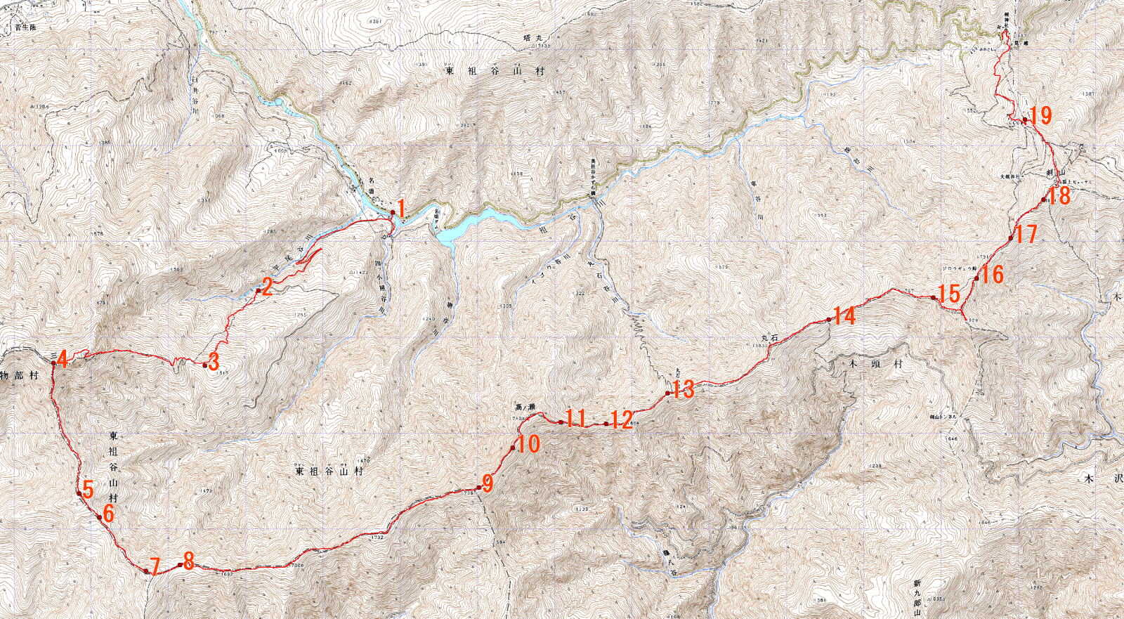 ★ 三嶺 剣山 縦走コース 拡大地図