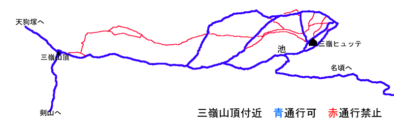 - この山域を行く登山者は コース上の藪の状況などは、それなりに ご承知おきの覚悟の上で 普段から コンパスの使い方 読図力 ルートファインディング能力 を養い、自己責任のもとで慎重に行動することを期待します。