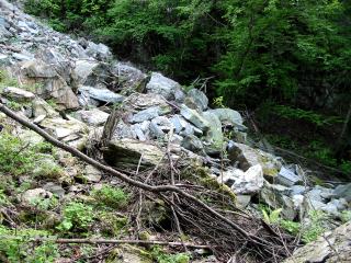 大屋内、木地屋へは電力保線道であるが、現在では崩れたところなど、かなり荒れたところもある。