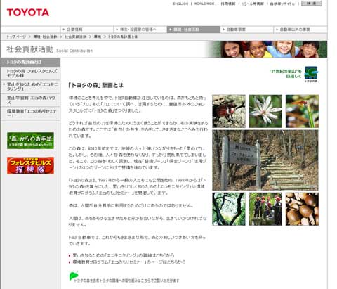 「 トヨタ自動車(株)(以下、トヨタ)は、社会貢献活動ならびに林業事業