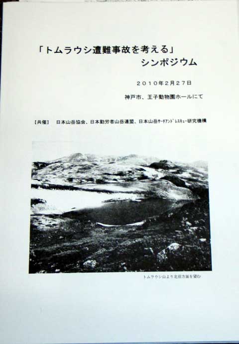 「トムラウシ遭難事故を考える」シンポジウムの当日の資料集(上の写真)が下記URLにて配布されています。(PDFファイルにてダウンロードできます。)