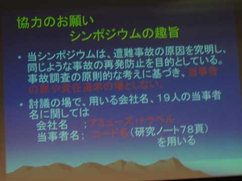 遭難事故の責任追及でなく 事故の再発防止を第一に考えて討議するという とても参考になった いいシンポジウムであった。