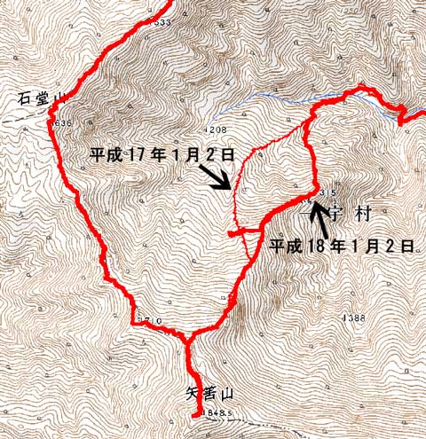 平成18年1月2日と平成17年1月2日に全く同じ山域に登りました。