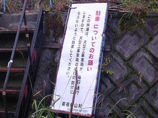 登山口に登山者用の専用駐車場が整備されていれば問題がないのですが、登山者の少ないマイナーな山へ行こうとすると狭い林道では意外に駐車できるところは限られます。登山者は駐車スペースの選定に細心の注意を払う必要があります。ことに駐車場が一杯だったりしたら、往々にして路肩駐車などが行われることになります。少し広くなった所で駐車に適しているなと思っても、民家に近いところでは、地元の人の専用駐車場であったりします。決まったところに決まった車が駐車するのです。道沿いに家が見えなくても道の上か下の離れているところに民家があることが多いのです。また、山里の人は実に良く見ています。いつどこにどんな車が止まっていたか顔を会わさなくても、車の駐車でよく見る車だとか、盆正月に息子さんが帰省しているとか、実によく見られてしまっているのです。よく行くところでは道で突然顔を会わせても車を見て今までの素行が全部知れ渡っていると思った方がよいのです。