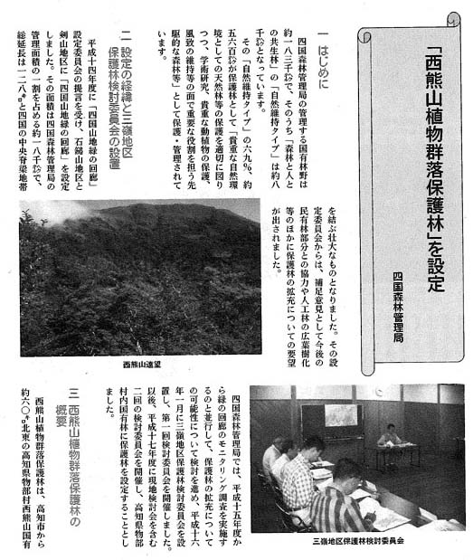 こうした折りに この山域の高知県側で登山道以外の立ち入りが禁止とされる 「西熊山植物群落保護林」が制定されました。(平成17年3月)
